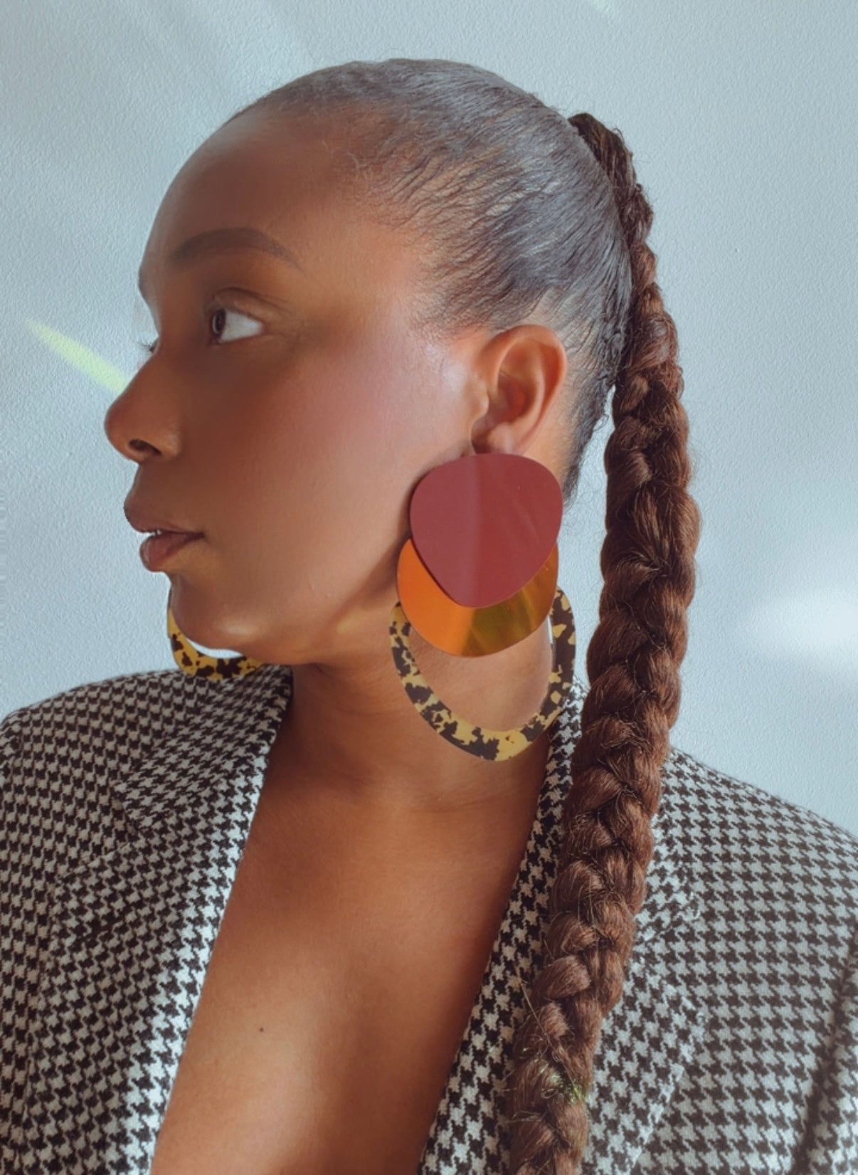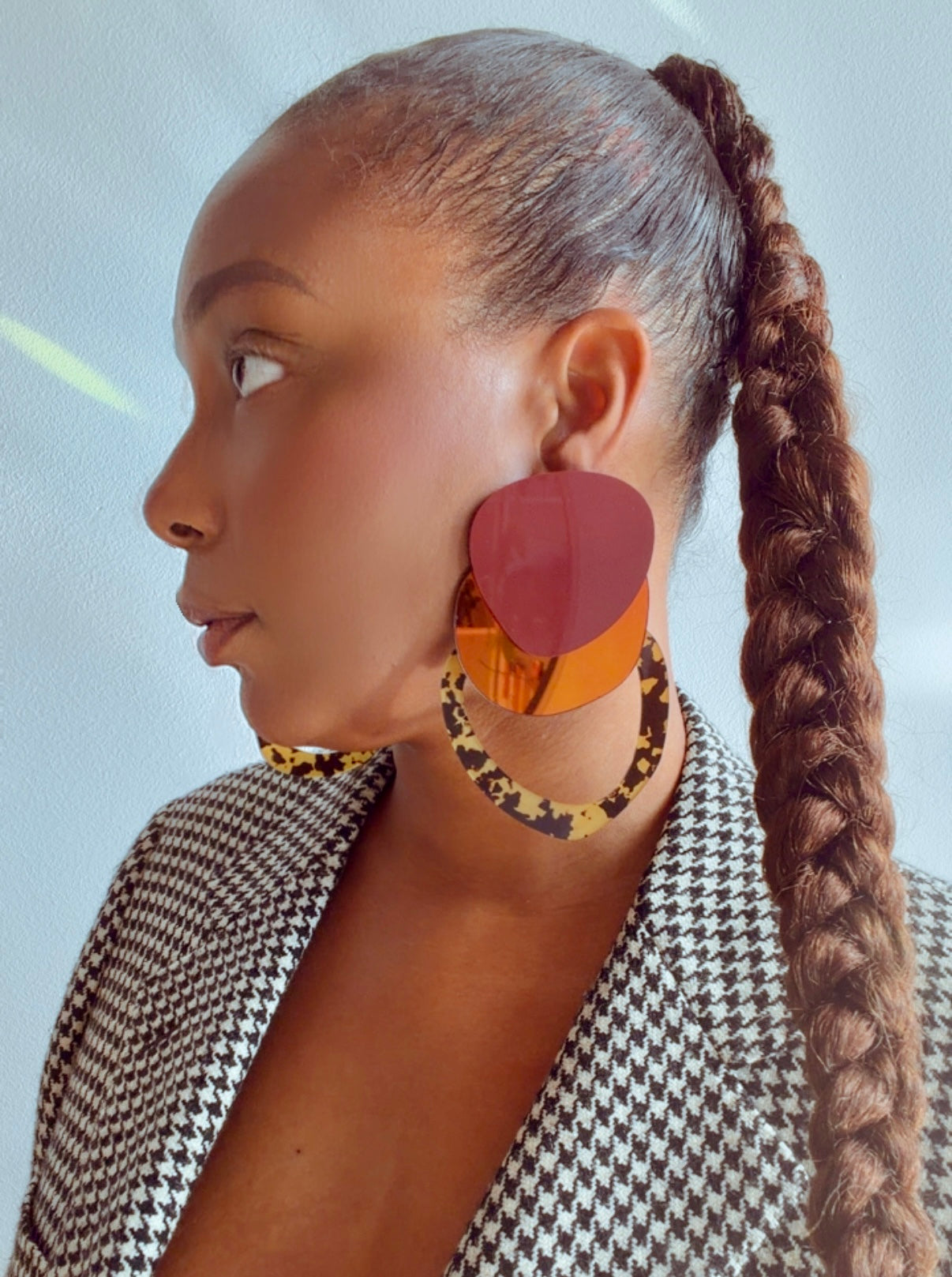 A three layered pattered acrylic design. Medium weight. Mirror. Burgundy. Tortoise.