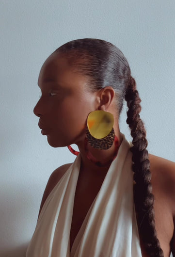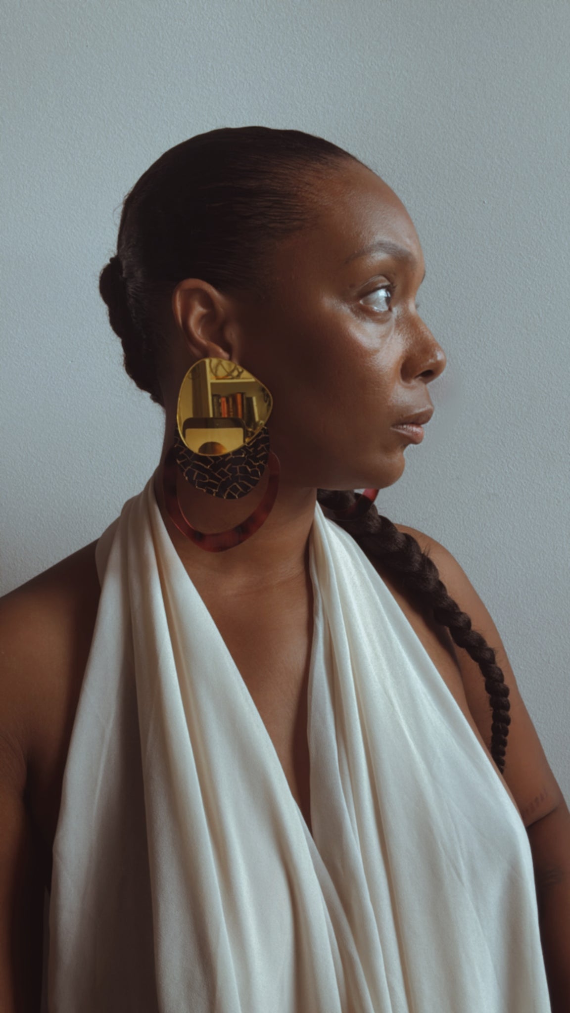 A three layered pattered acrylic design. Medium weight. Mirrored Yellow Gold. Black Kintsugi. Red Tortoise.